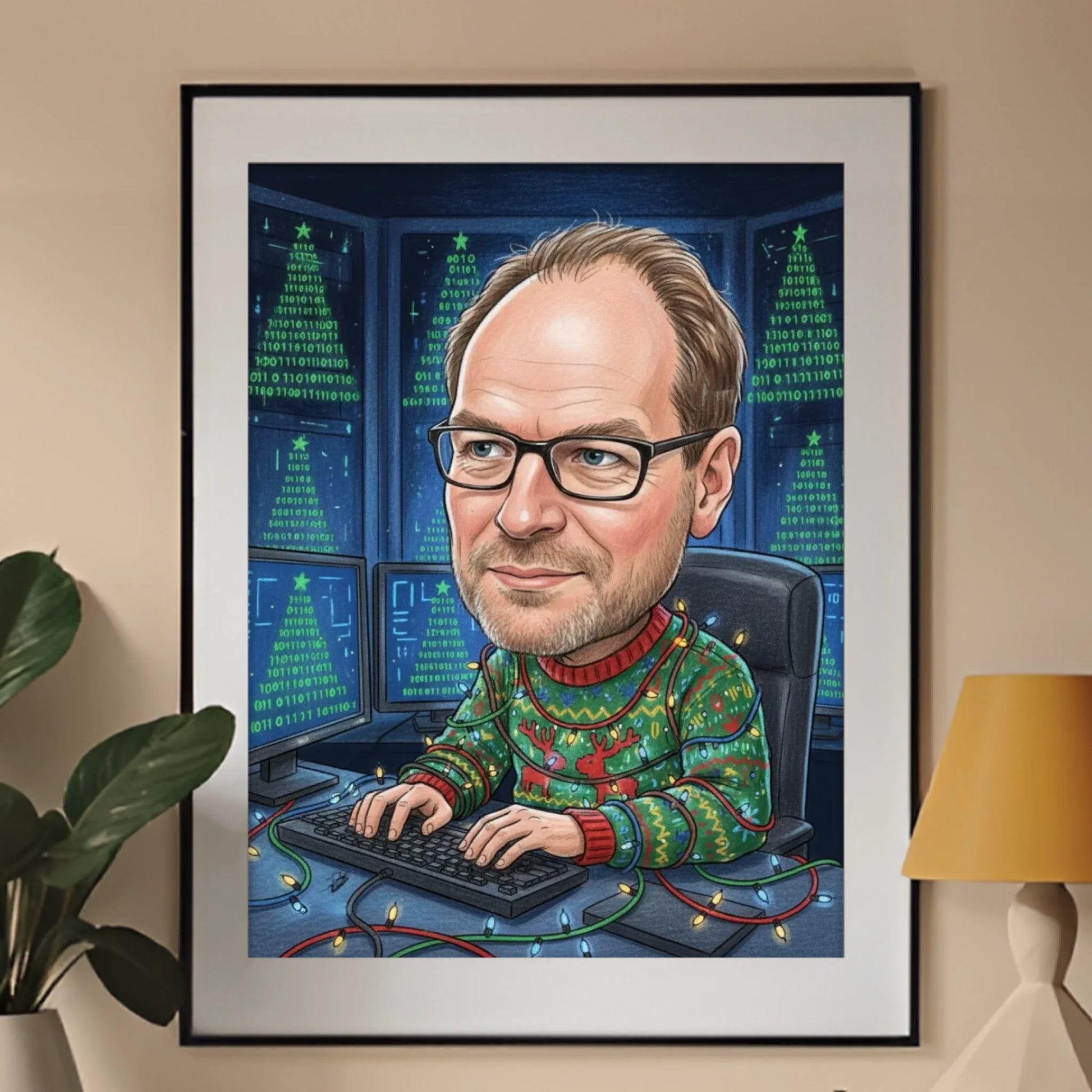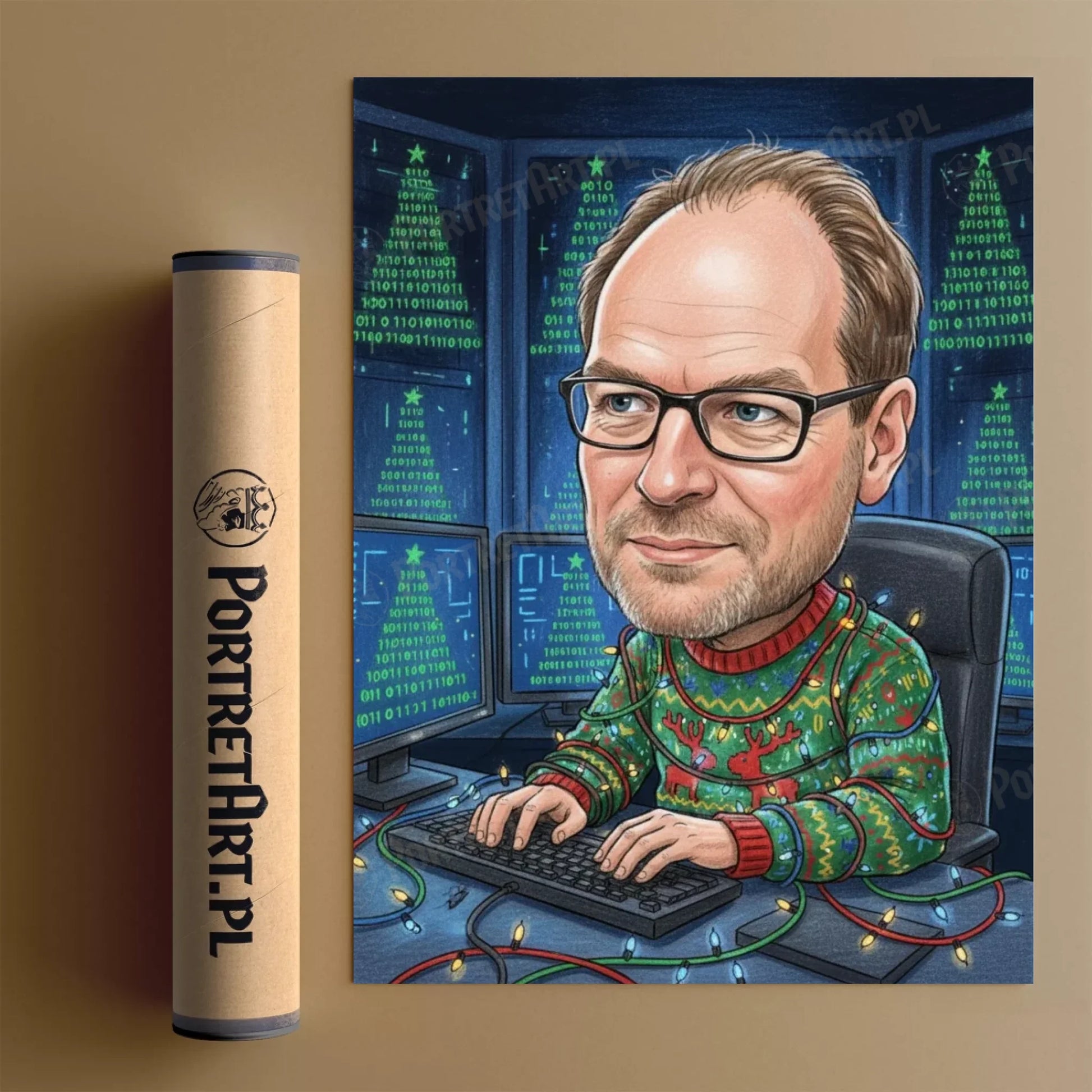 Informatyk Programista Wersja Świąteczna - Karykatura ze zdjęcia