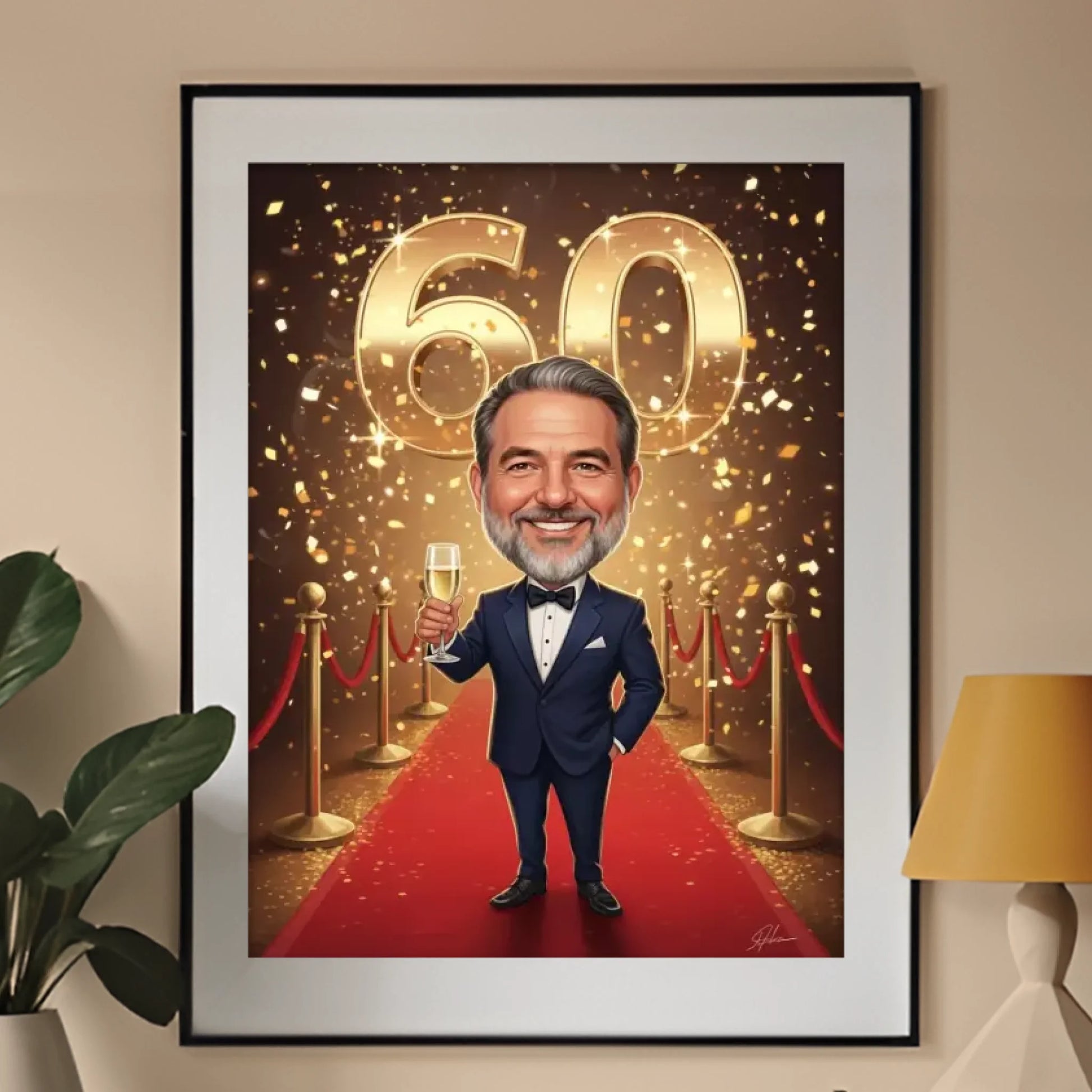 Tak, naszą specjalnością jest karykatura ze zdjęcia na urodziny. Możesz wybrać wzory z balonami i liczbami, dzięki czemu powstaje np. karykatura ze zdjęcia na 30 urodziny, na 40 urodziny czy na 50 urodziny. Wystarczy dodać zdjęcie jubilata, wybrać odpowiednią liczbę i format – resztę zrobimy my. Taki prezent jest zabawny, personalizowany i zostaje na lata.