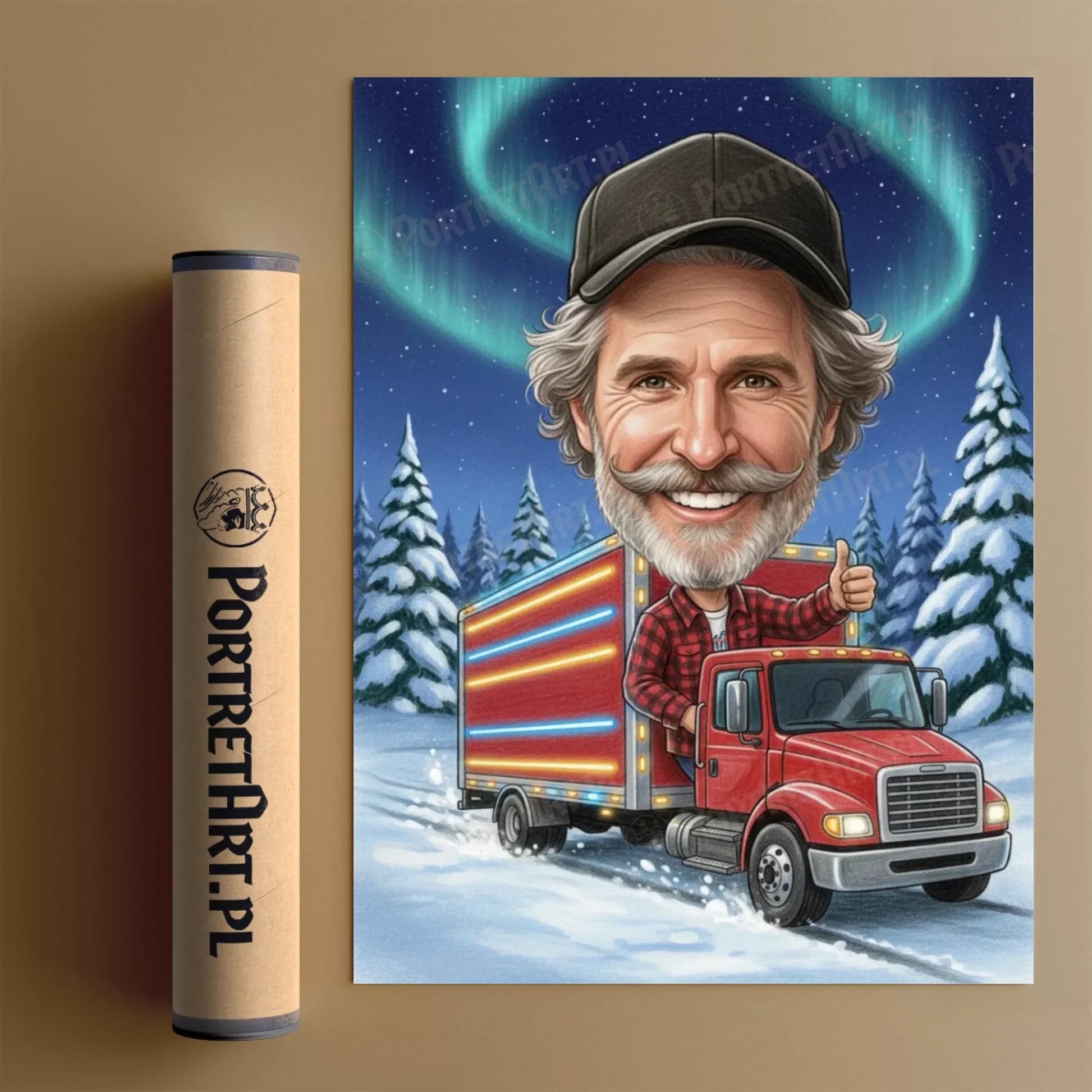 Kierowca Ciężarówki Wersja Świąteczna - Karykatura ze zdjęcia