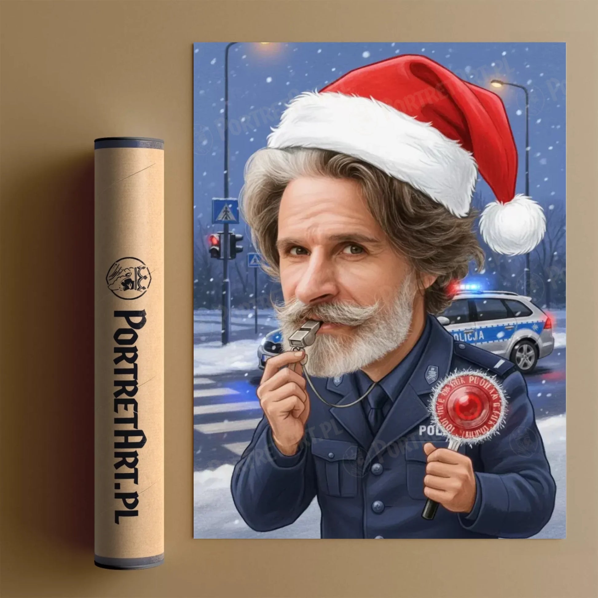 Policja Wersja Świąteczna - Karykatura ze zdjęcia