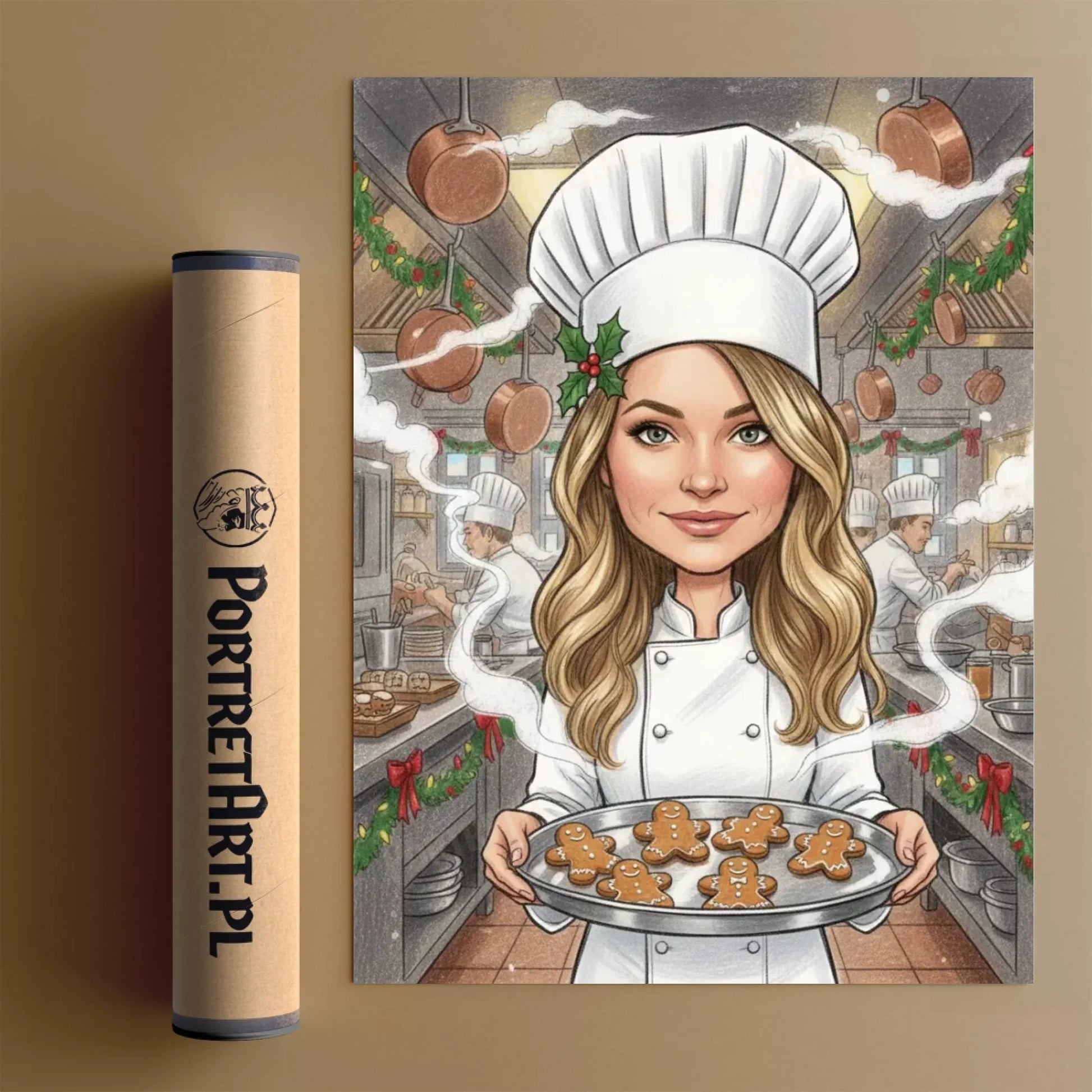 Świąteczny Szef Kuchni - Karykatura ze zdjęcia