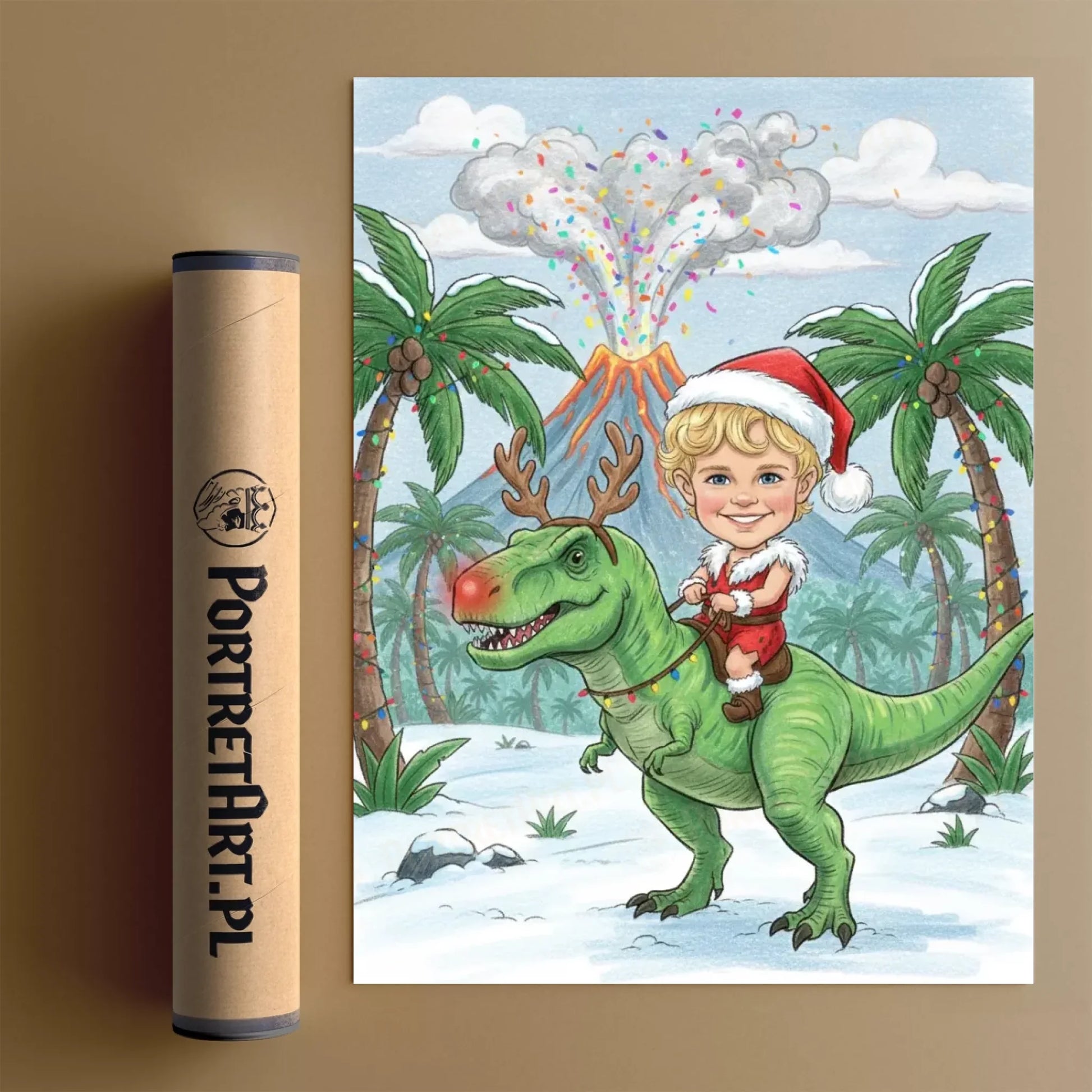 Świąteczny T-Rex - Karykatura ze zdjęcia