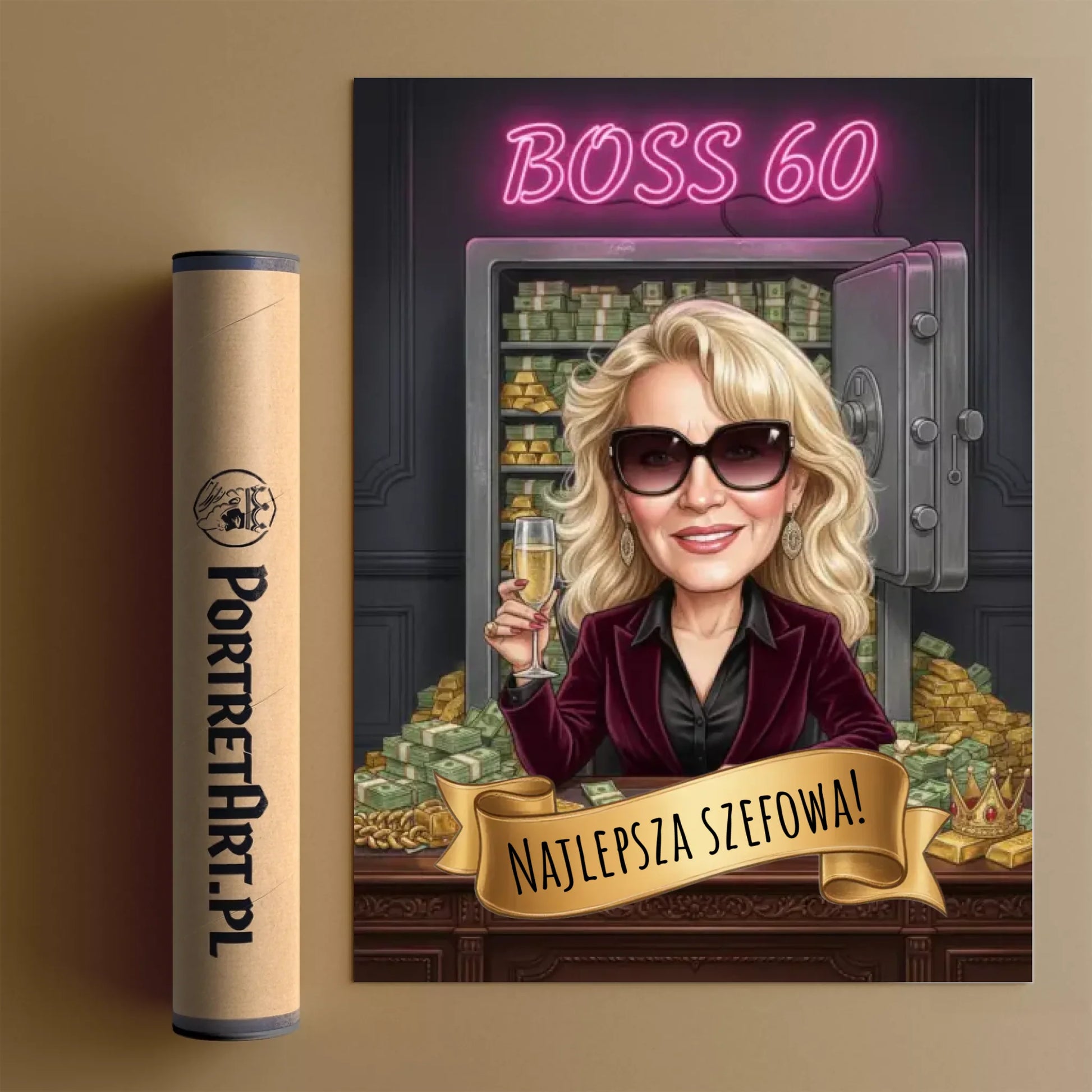 Karykatura ze zdjęcia na płótnie to wydruk na specjalnym materiale malarskim naciągniętym na drewniane krosno – gotowy obraz, który od razu można powiesić na ścianie. Plakat drukujemy na grubym papierze premium, idealnym do oprawienia w ramę lub powieszenia w ramce, którą wybierasz w naszym sklepie. Ten sam projekt karykatury możesz mieć więc w kilku wersjach – jako plakat, obraz na płótnie lub obraz w ramce.